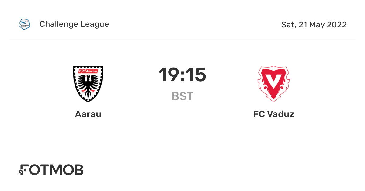 Venue Name Sportanlage Schachen - Kunstrasenplatz City Aarau Capacity 1500. Der Schiedsrichter beendet die Partie FC Vaduz schlägt FC Aarau. Aarau is currently on the 2 place in the Challenge League table.